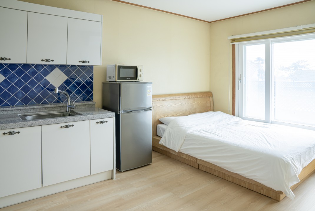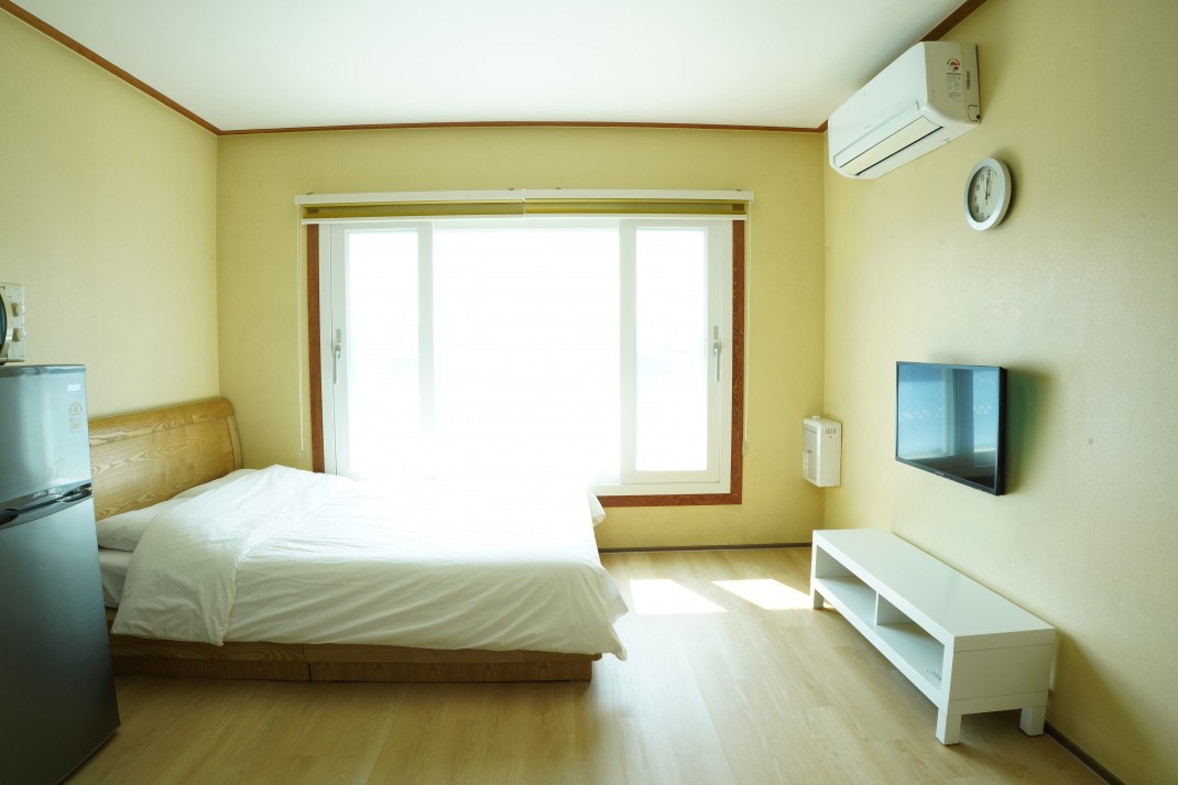 본문 / 방 정보 객실명 형태(스타일) 크기 인원(기준/최대) 102호 원룸형 침대룸(침대1개) 11평 2/4 가격 정보 비수기 준성수기 성수기 추가요금 주중 금요일 주말 주중 금요일 주말 주중 금요일 주말 70,000원 120,000원 120,000원 130,000원 130,000원 130,000원 160,000원 160,000원 160,000원 15,000원 시설안내 TV,에어컨,보일러,냉장고,밥솥,전자렌지,커피포트,취사기구,인덕션,드라이기,수건,샴푸,린스,폼클렌징,바디워시,치약