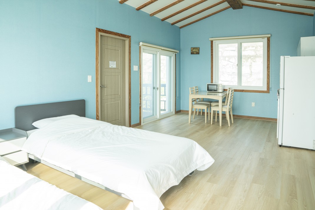 본문 / 방 정보 객실명 형태(스타일) 크기 인원(기준/최대) 201호 원룸형 침대룸(침대2개) 13평 3/6 가격 정보 비수기 준성수기 성수기 추가요금 주중 금요일 주말 주중 금요일 주말 주중 금요일 주말 100,000원 160,000원 160,000원 170,000원 170,000원 170,000원 190,000원 190,000원 190,000원 15,000원 시설안내 TV,에어컨,보일러,냉장고,밥솥,전자렌지,커피포트,취사기구,인덕션,드라이기,수건,샴푸,린스,폼클렌징,바디워시,치약